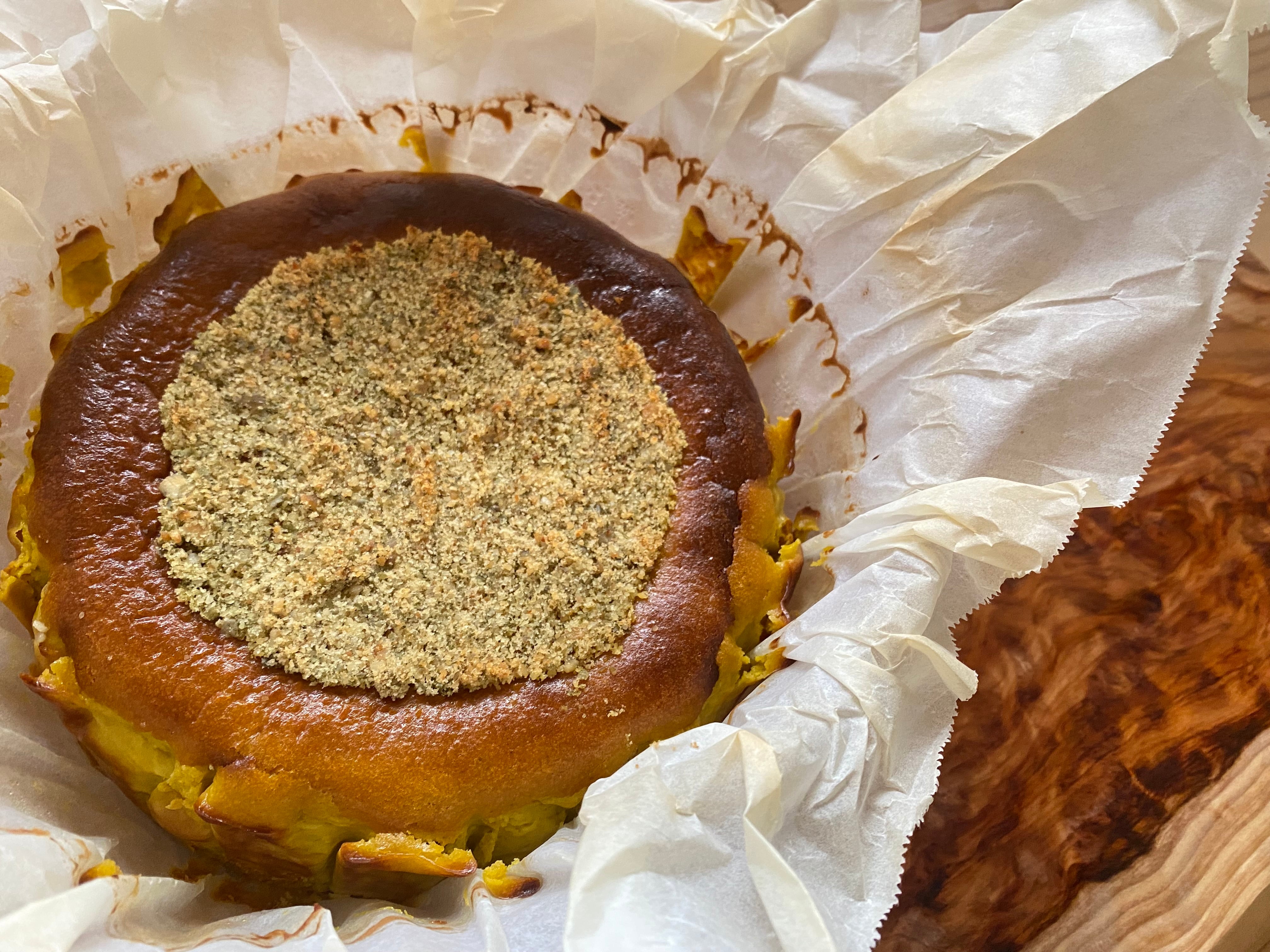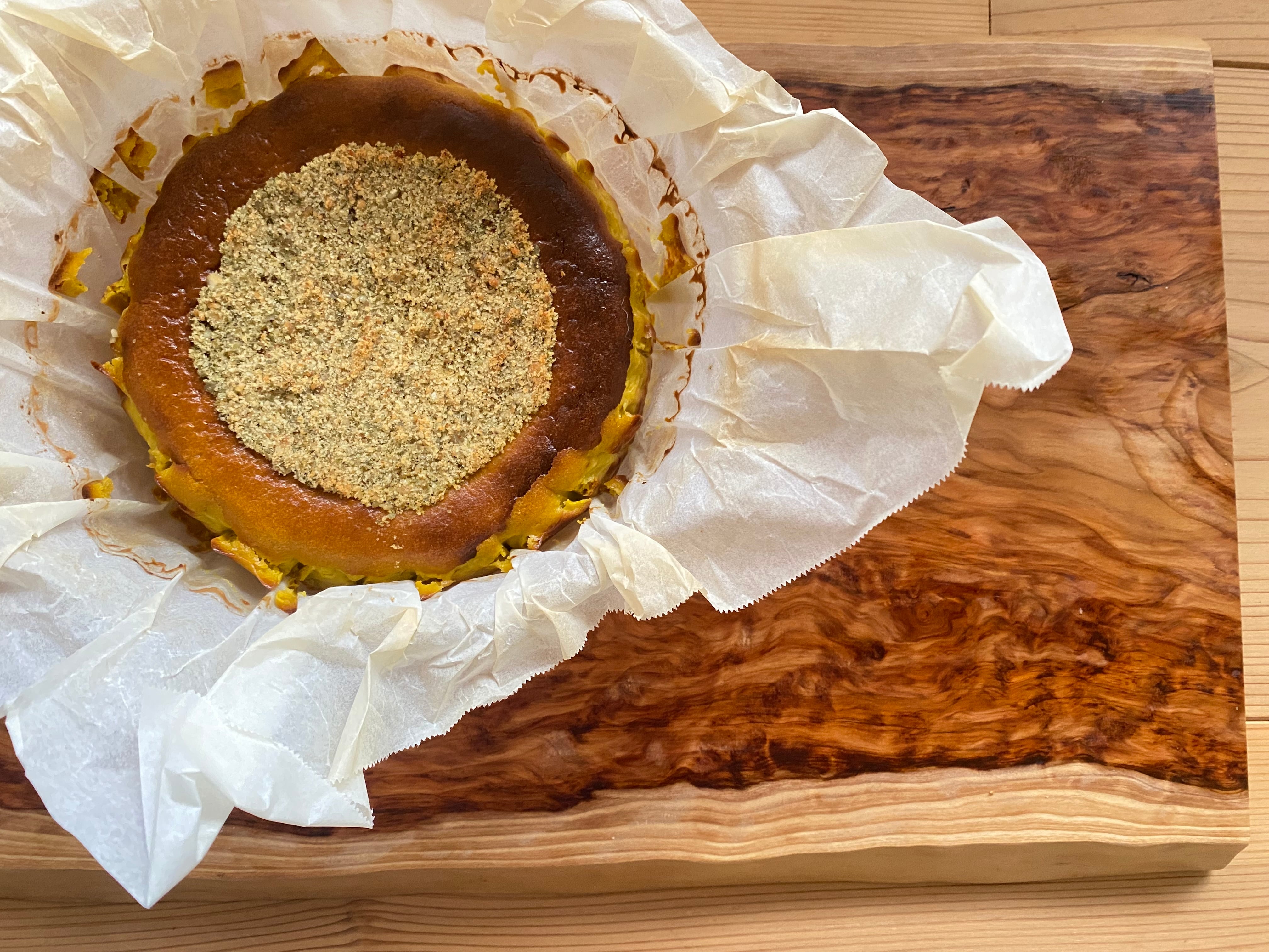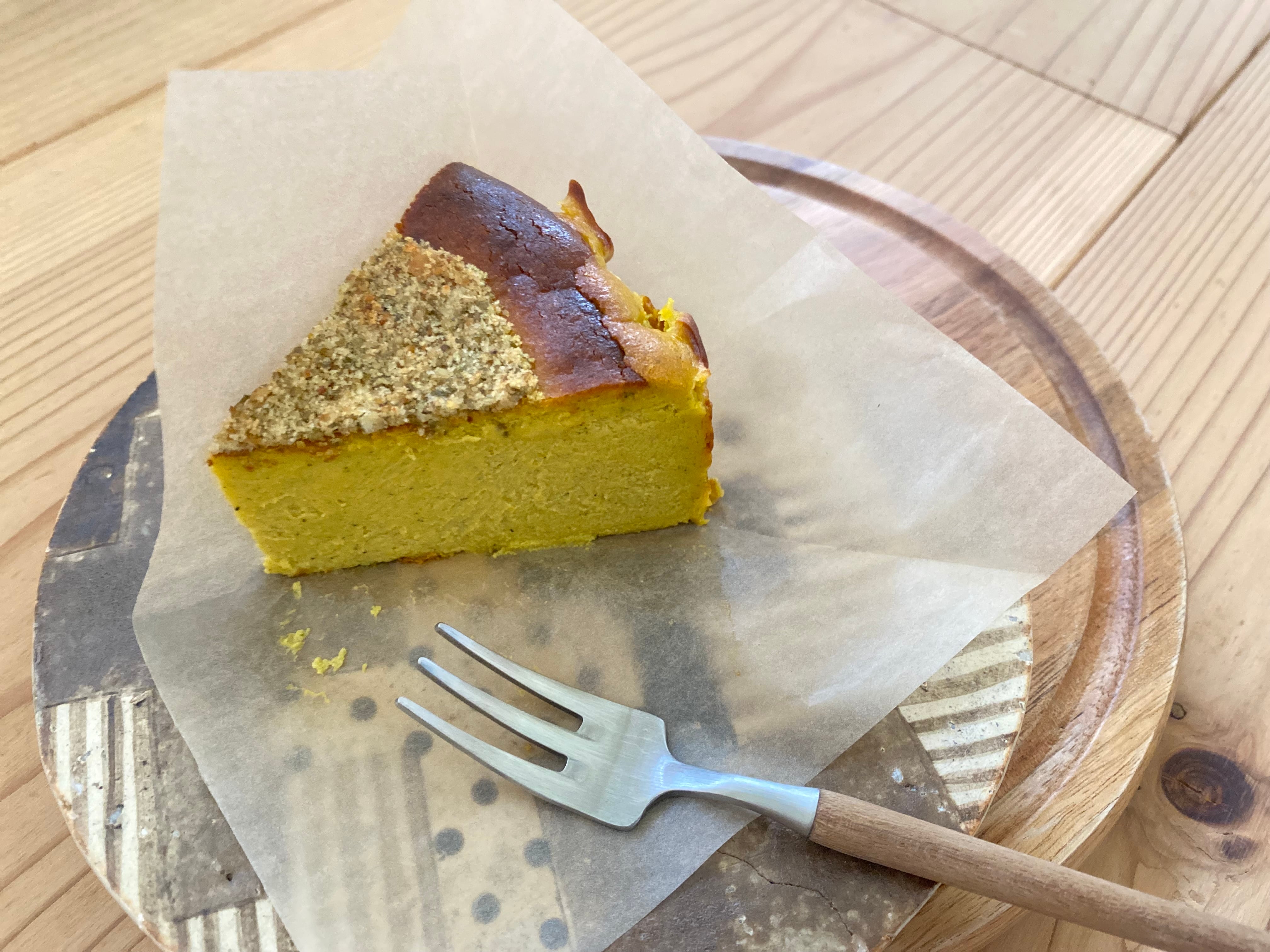 北海道産栗かぼちゃを裏漉ししてたっぷりと混ぜ込み、かぼちゃの美味しさをケーキにとじこめました。愛媛の山奥、久万高原町の古民家で素材の味を活かす様、ひとつひとつ丁寧に手作りした素朴なバスクチーズケーキです。